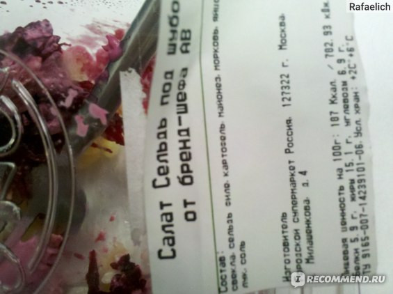 То, что делают в Азбуке Вкуса (по крайней мере в Неглинной Плаза, на Трубной) недостойно ни одного супермаркета, но они еще называются премиум классом. Не первый раз покупаю испорченную приготовленную еду. В прошлые разы выбрасывал прокисшее картофельное пюре под маркой "Уже готово". Сегодня, 01.06.2015, работники магазина даже не стали менять бокс для салата "сельдь под шубой", а содрали старую этикетку, и наклеили новую (см. фото). Салат был прокисший. Я так понимаю, это происходит постоянно в этом магазине.