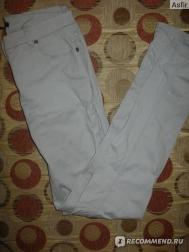 Светло-серые узкие джинсы стоимостью 999 рублей. Моя первая покупка. Удивительно, но она не отвратила меня от магазина, хотя правая штанина явно кособочит. Кто так «умело» её сшил, остается загадкой, но факт в том, что при ходьбе вся штанина от колена и ниже стремится развернуться внутренним швом вперед. Плюс цвет оказался марким, стираю почти после каждой носки. И ношу из-за подобного брака с высокими сапогами либо на велосипедной прогулке – с согнутой ногой ничего не кособочит. И мне кажется, они меня полнят /modules/smileys/packs/Roving/aw.png Но по сути это единственная неудачная покупка.