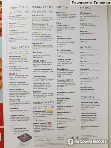 Ценовая категория пиццерии варьируется от 345 руб. до 785 руб.