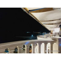 Кафе в два этажа, на первом этаже шумно, громко играет музыка ( также там и бывает живая музыка ), мы же пошли на второй этаж, там красивый вид на балконе, столики расположены прямо у балкона, конечно живописнее всего здесь ужинать на закате.. мы второй раз приходим поздним вечером, но все равно там довольно красиво к тоже же отличный, свежий, морской воздух...
