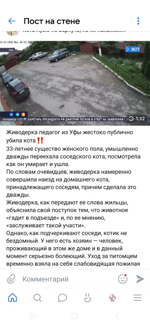 По сети разнеслось видео с камеры наблюдения во дворе, как данное существо намеренно переехало домашнее мелкое животное на машине несколько раз , наслаждаяясь далее последствиями проделанного, не делая ничего. По данным из сети- систематически мучает животных на видео и рассылает людям . Читать полностью