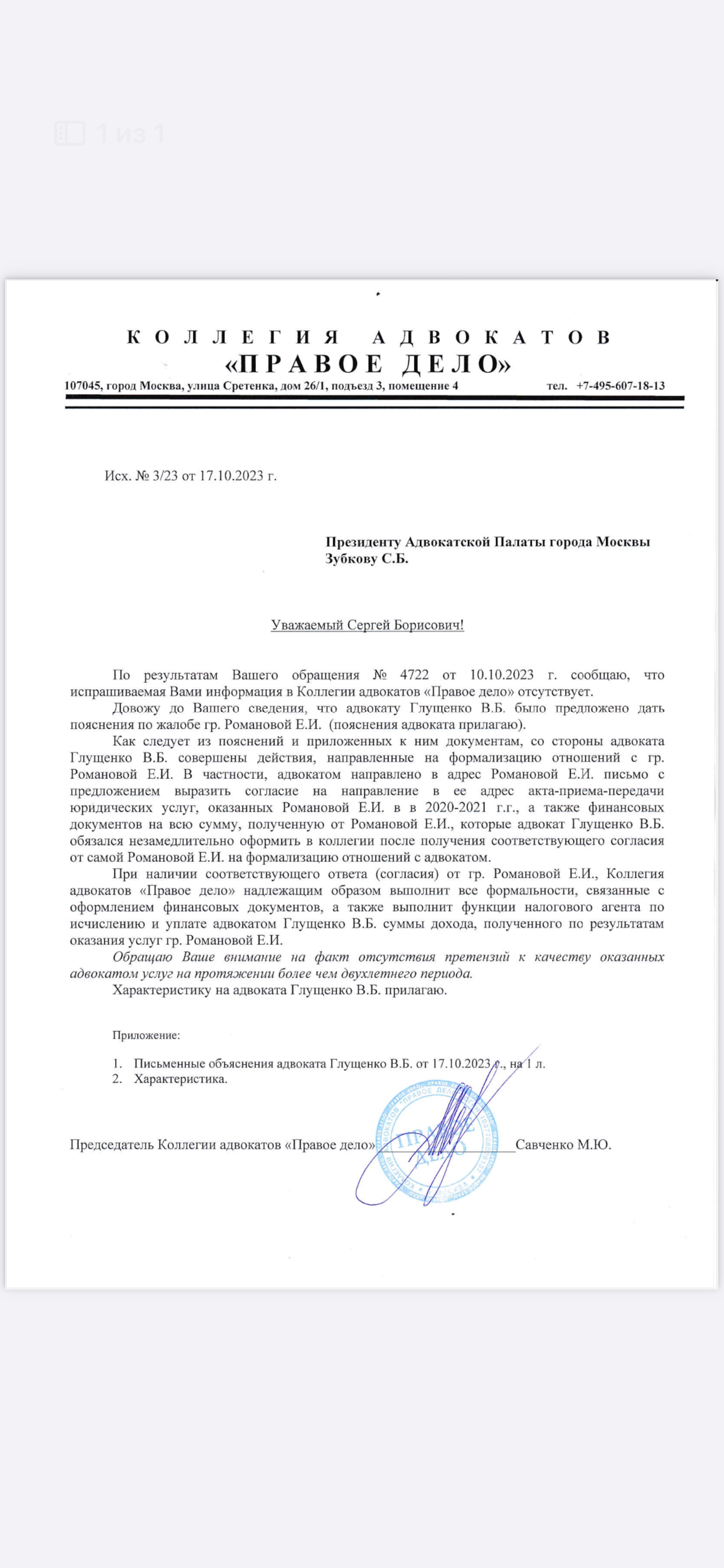 Мой отзыв про адвоката Савченко Михаила Юрьевича 77/2706 об его идентичном поступке, где его член коллегии адвокатов «Правое дело» Глущннко Владислав Борисович грубо нарушает действующее законодательство, присваивает чужое! Видя, что клиент дилетант, обводит его вокруг пальца, не заключает никаких документов, не выдает документы за полученные крупные финансы, заработанные моим непосильным трудом. Причем эта коллегия адвокатов Правое дело занималась моим разводом с бывшим супругом, взысканием алиментов на ребенка, разделом имущества, а потом, сотрудник этой коллегии Савченко Михаила Юрьевича адвокат Глущенко Владислав Борисович заявляет, что не получал от меня наличные 500000 руб., вот это сюрприз, это бессовестные адвокаты, которые берут твои деньги, а при претензии, утверждают, что не получали, утверждают даже в Адвокатской палате города Москвы, где президент палаты очень удивлялся такой заявке. Срам ему за такую ложь.