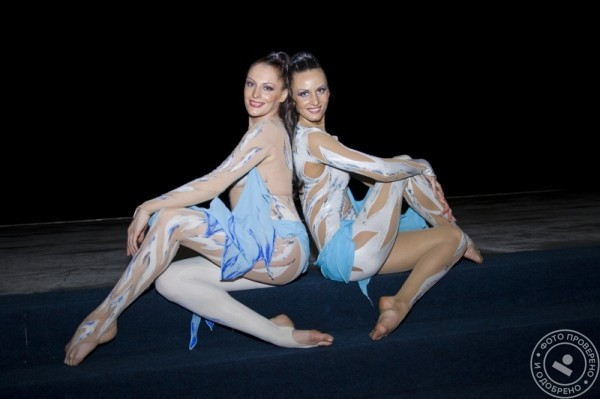• «Дуэт на воздушном кольце» – это красивый, завораживающий танец в воздухе в исполнении двух высоких, фактурных, длинноногих гимнасток.