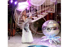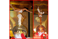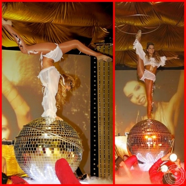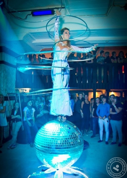 • Владлена Ананьева представляет единственный в г. Москве номер «Девушка на шаре», способный стать эффектным украшением любого праздничного мероприятия. Артистка, выступающая на крутящемся вокруг своей оси зеркальном шаре, сочетает танец с невероятным вращением обручей, используя элементы акробатики, эквилибра и пластического этюда.