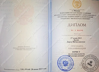 - НИУ ВШЭ, факультет права, специальность – юриспруденция (2013 г.).