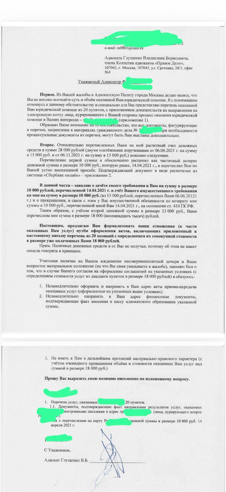 Письмо приходит, открываю, читаю, удивляюсь, ты кого адвокат на деньги кинуть хочешь? Ты совсем невоспитанный? Ты вроде адвокат, но далек от понятий.