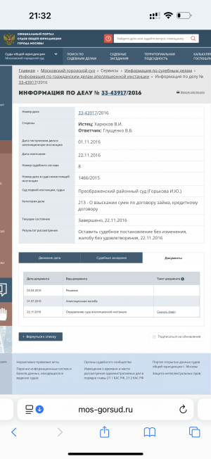 Решила провести мониторинг судебных дел где адвокат Глущенко Владислав Борисович выступает в роли ответчика, из того что нашла, вылезли 9 гражданских дел с 2016 года, это как раз тот период, когда адвокат начал заниматься выкупом долгов пострадавших граждан и решил их самостоятельно взыскивать в судах, оформл... Читать полностью